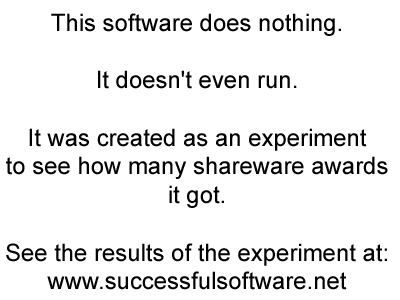 I put out a new product a couple of weeks ago. This new product has so far won 16 different awards and recommendations from software download sites. Some of them even emailed me messages of encouragement such as “Great job, we’re really impressed!”. I should be delighted at this recognition of the quality of my software, except that the ‘software’ doesn’t even run. This is hardly surprising when you consider that it is just a text file with the words “this program does nothing at all” repeated a few times and then renamed as an .exe. The PAD file that described the software contains the description “This program does nothing at all”. The screenshot I submitted (below) was similarly blunt and to the point: